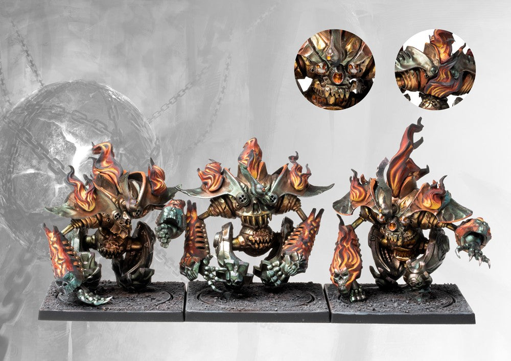 Powered by its furnace and driven by the cruel intellect that permeates it, the Inferno Automata is a terror on the battlefield whose piston driven limbs can propel their incandescent bodies across the battlefield with blistering speed. Once in combat the demonic nature of the spirit that inhabits it becomes readily apparent as they rend those opponent who survive the blistering heat and toxic fumes of its furnace limb from limb, growling and hissing with pleasure throughout the entire grisly affair.