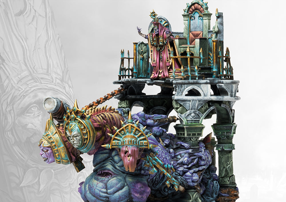 This amorphous mass of former believers has been bound to the will of an Archimandrite, carrying them into battle and fueling their blasphemous sorceries. The Fallen Pulpit excels on the front lines, supporting your troops in combat while providing an incredibly tough launch pad for its essential supporting spells.